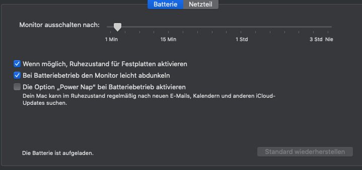 Mit den o.g. Einstellungen beobachte ich dann ergänzend vermehrt, dass der Ruhezustand nach bspw. 10 Sekunden immer wieder erneut einsetzt. Das Bild geht für 1-2 Sekunden aus und dann wieder an.