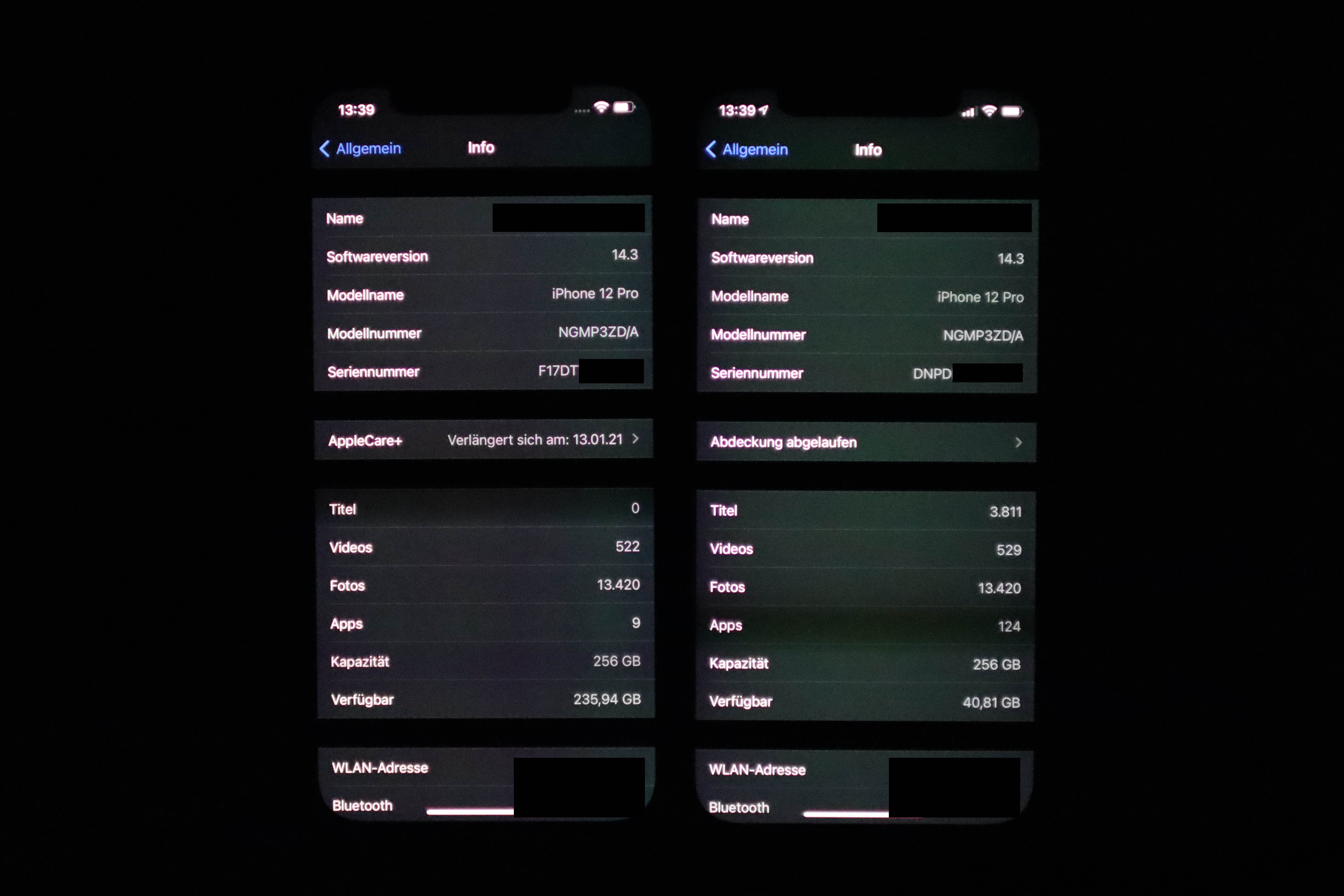 Hier noch ein Foto-Vergleich von den beiden iPhone 12 Pro.