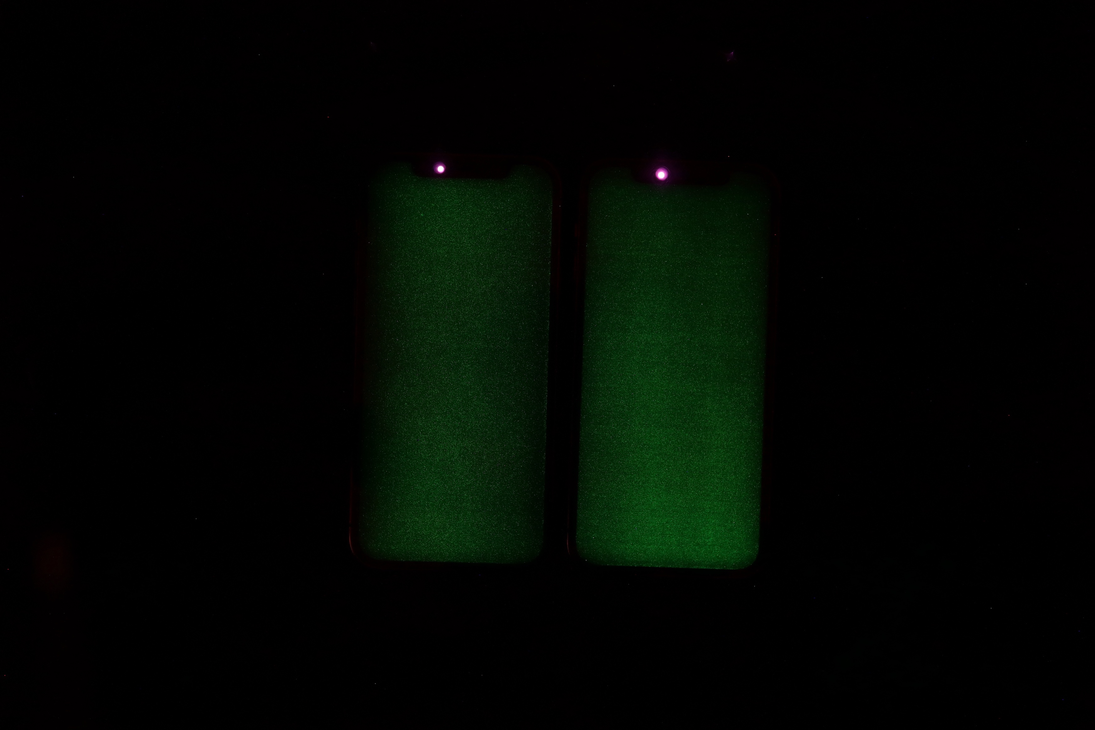 Heute kam mein 2. Austauschgerät (also 3. iPhone 12 Pro) und leider ist es aus der gleichen Produktionswoche wie das bisherige Austauschgerät und der gleichen Fabrik. Damit scheint es auch die gleiche Display-Charge erwischt zu haben, denn es sieht 1:1 gleich aus und hat daher auch immer noch den Grün-Schimmer Fehler bei schwarzen Inhalten.