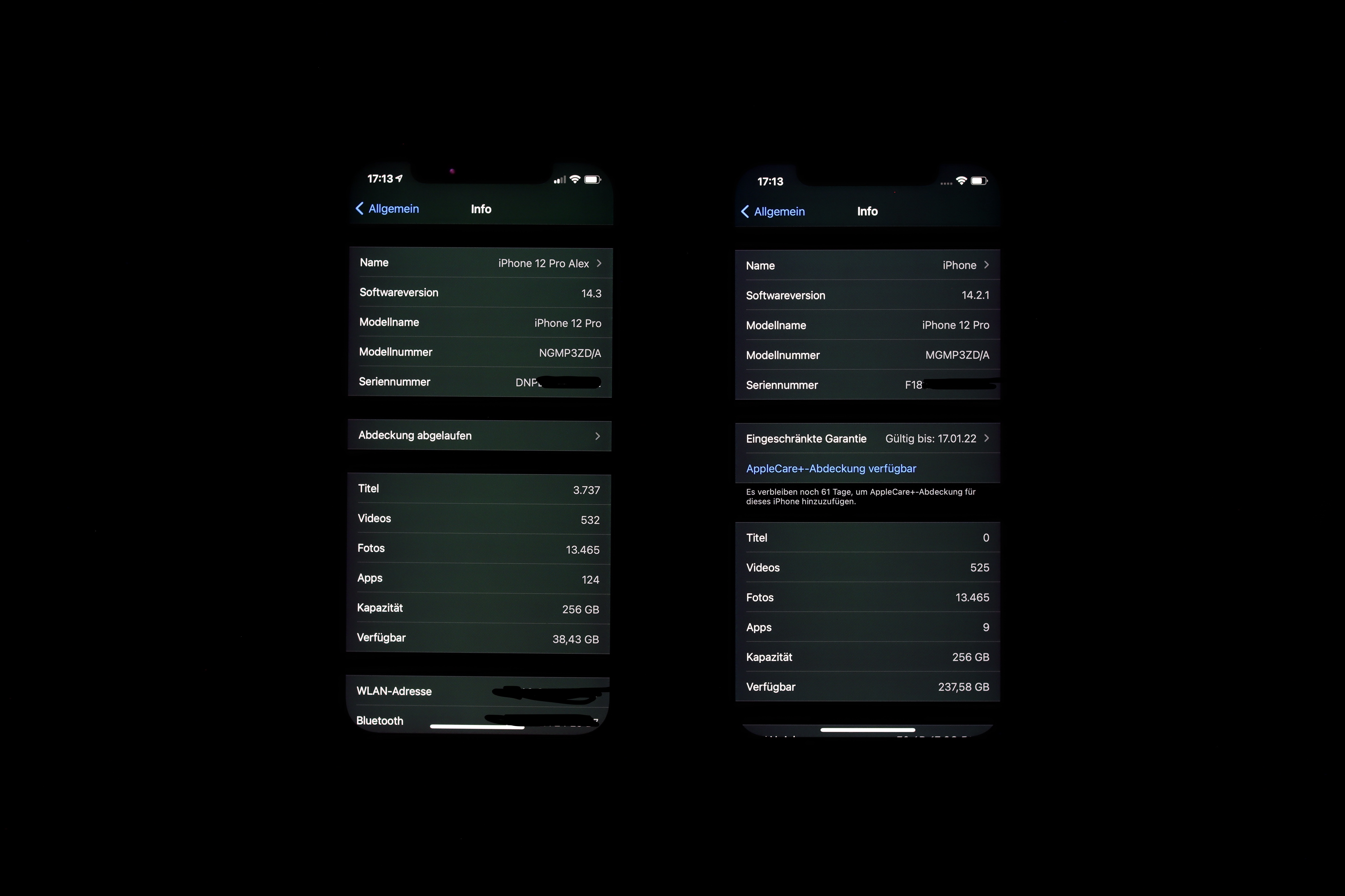 Denn auf beiden Geräten ist iOS 14.3, sprich sie müssten beide ein identisches Verhalten zeigen.
