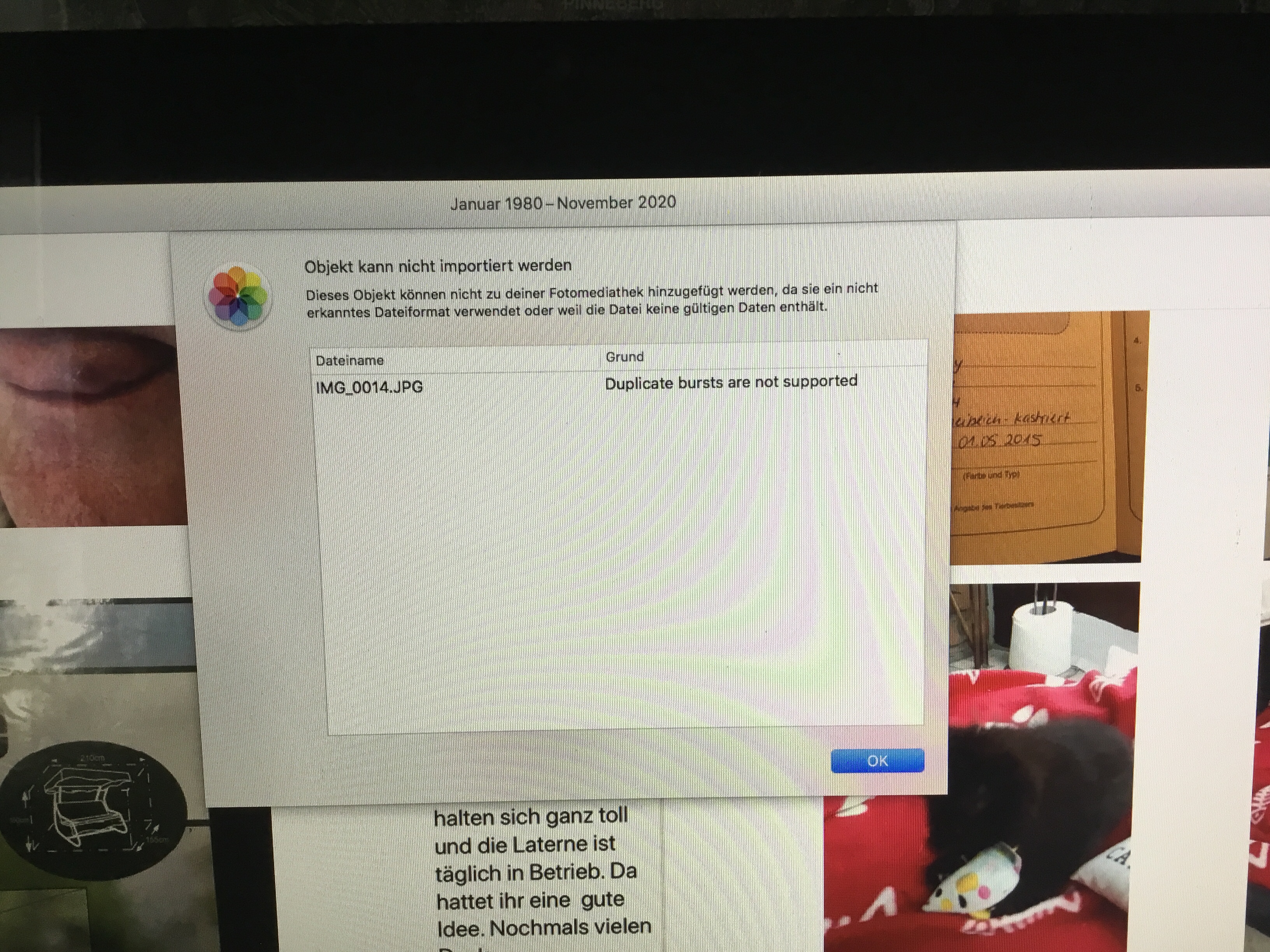 Laut dem Bildschirmfoto versuchst du gerade Bilder zu importieren? Von wo kommen diese Bilder? Wie gehst du dabei genau vor?