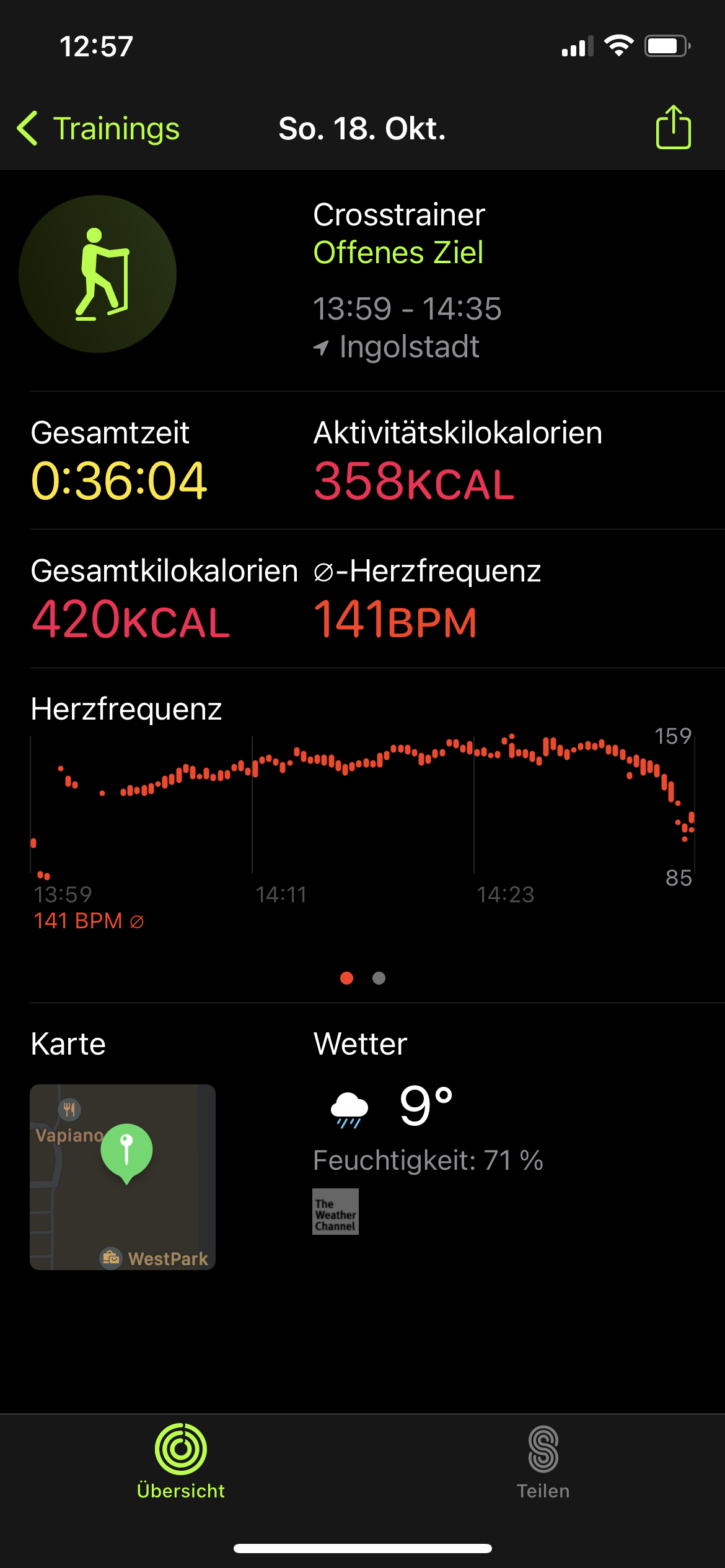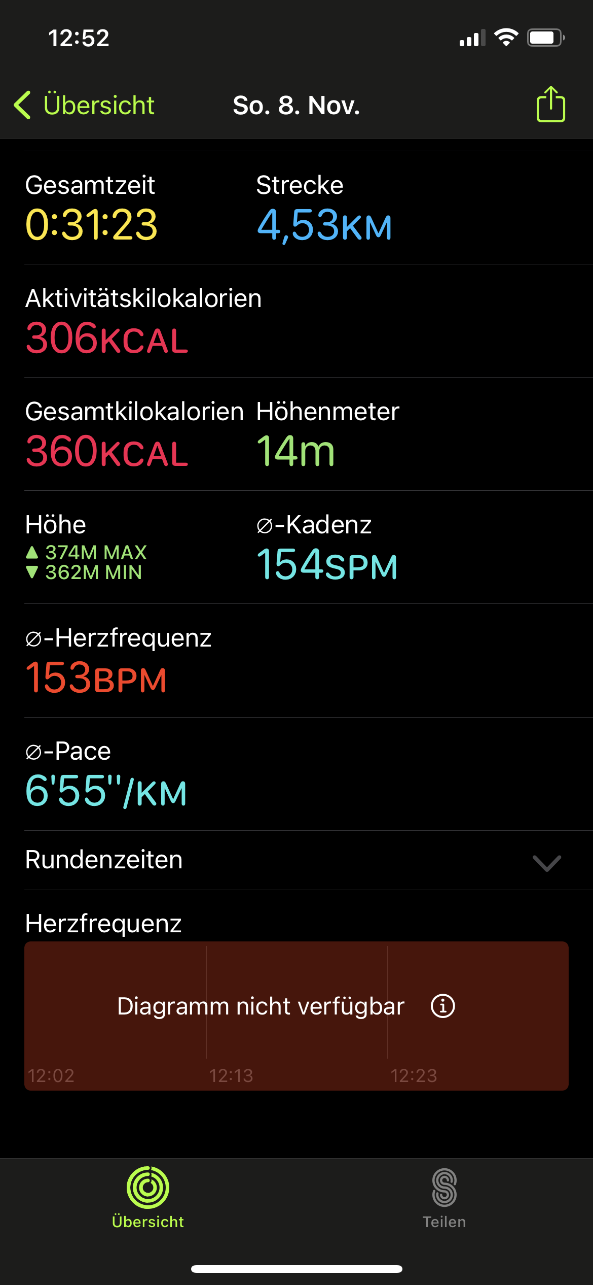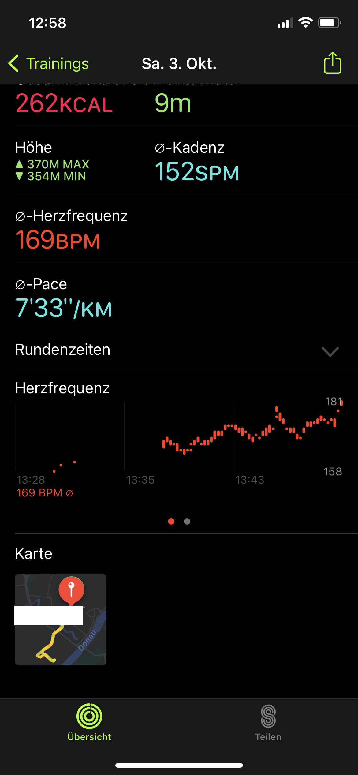 Wenn du die Training-App verwendest, misst die Apple Watch deine Herzfrequenz kontinuierlich während des Trainings sowie drei Minuten lang nach dessen Ende, um auch die Erholungsherzfrequenz nach dem Training zu ermitteln. Wenn deine Herzfrequenz nicht angezeigt wird, überprüfe die Einstellungen.