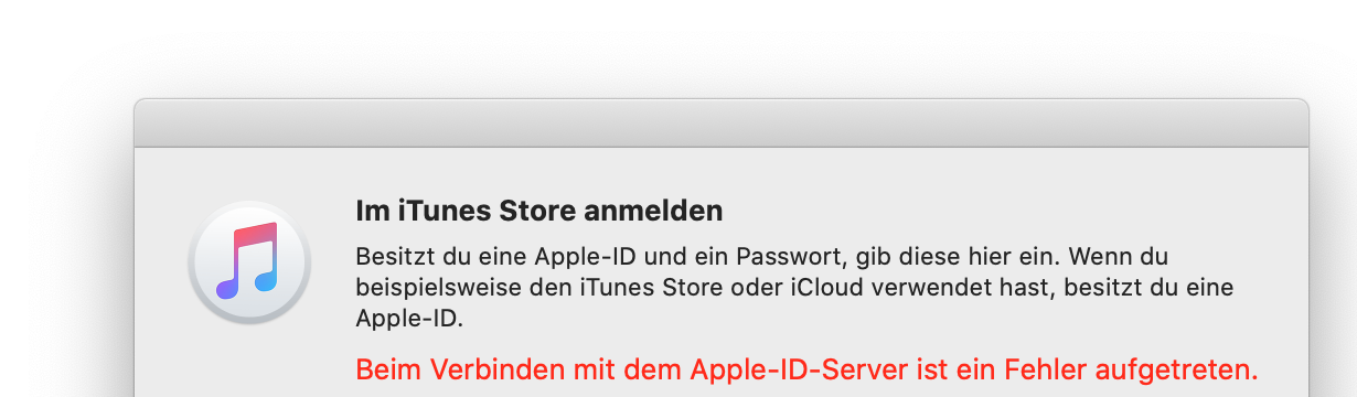 "Beim Verbinden mit dem Apple-ID-Server ist ein Fehler aufgetreten."