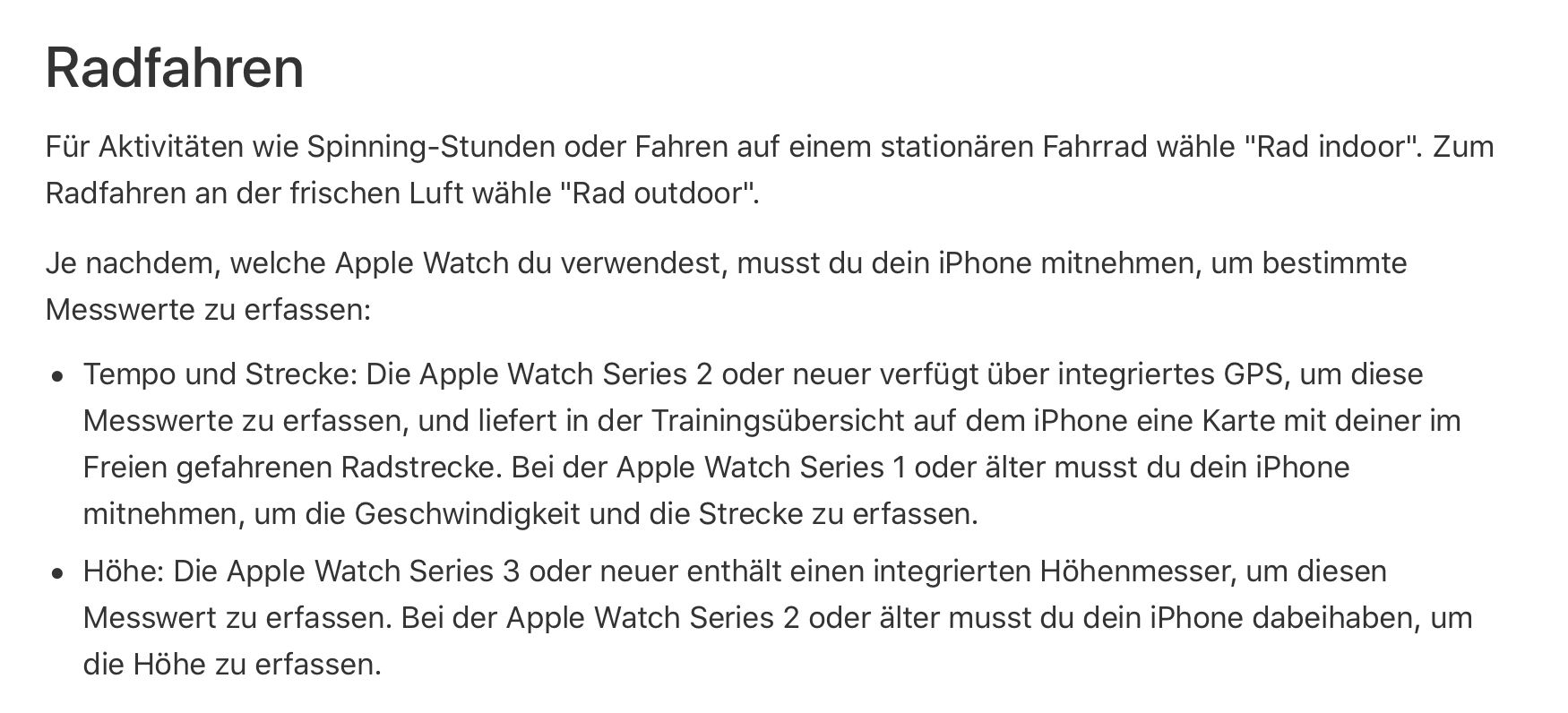 Glaubst du nicht das beim Radfahren GPS genutzt wird? Wie soll die Uhr die Beinbewegung messen?
