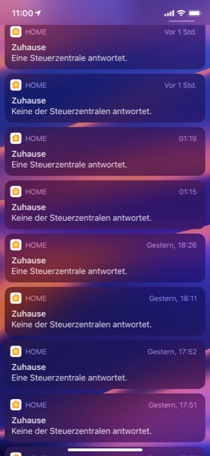 Seit dem Upgrade auf 14.2 erhalte ich in unregelmäßigen Abständen (wenn ich nicht zuhause bin) die Meldung das eine oder mehrere Steuerzentralen nicht antworten.