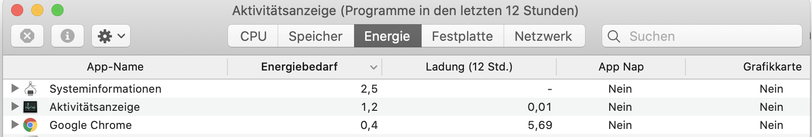 ich suche jetzt schon eine ganze Weile nach einer Lösung oder Hinweisen, was da los ist. Mein MacBook Pro (15-inch, 2018 mit Touchbar) ist nahezu immer negativ. Dies äußert sich so, dass das Gerät bei geringer Last bereits anfängt, den Ladezustand der Batterie in der Statusleiste zu verringern, bzw. auch gern mal auf den "Batterie wird nicht geladen" Zustand springt.