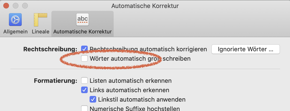 Ich möchte in meinen Zellen in Numbers Texte einschreiben aber klein geschrieben. Das Programm lässt das nicht zu? Was muss ich ändern