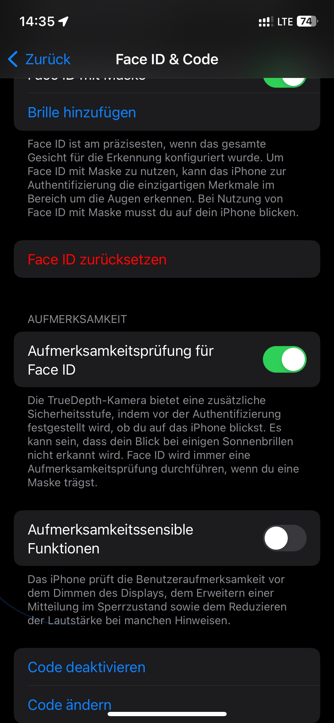 Auch habe ich mal die Einstellung deaktiviert, wodurch Face ID den Sound regelt, wenn z.B jemand anruft. Wenn man dann aufs Handy schaut klingelt es ja auch leiser. Hat aber leider nichts gebracht.