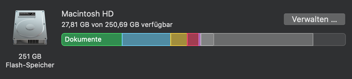 Hallo, seit einiger Zeit habe ich auf meinem Mac Book Air (2019) nur noch sehr wenig Speicher frei, da ''Sonstige'' 88 GB Speicher belegt. Ich habe den Mac schon im gesicherten Modus gestartet und es mit einem Backup versucht leider hat das nichts gebracht. Gibt es vielleicht noch andere Möglichkeiten ''Sonstige'' zu entfernen oder überhaupt erst einmal ''Sonstige'' zu finden.