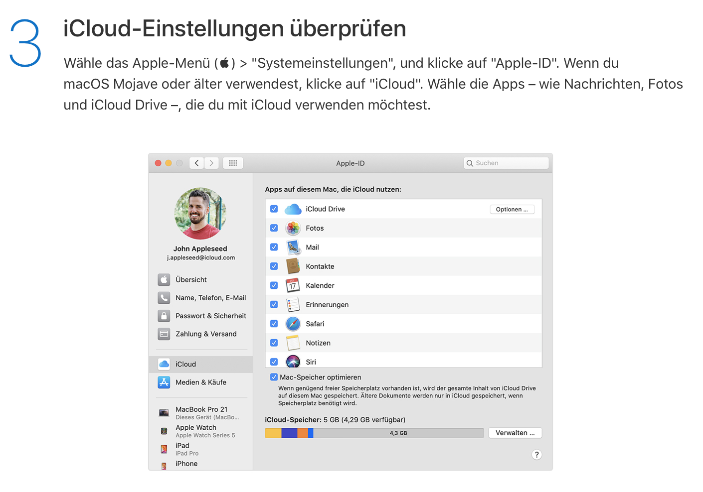 Aus dem Support Artikel: iCloud auf dem Mac einrichten