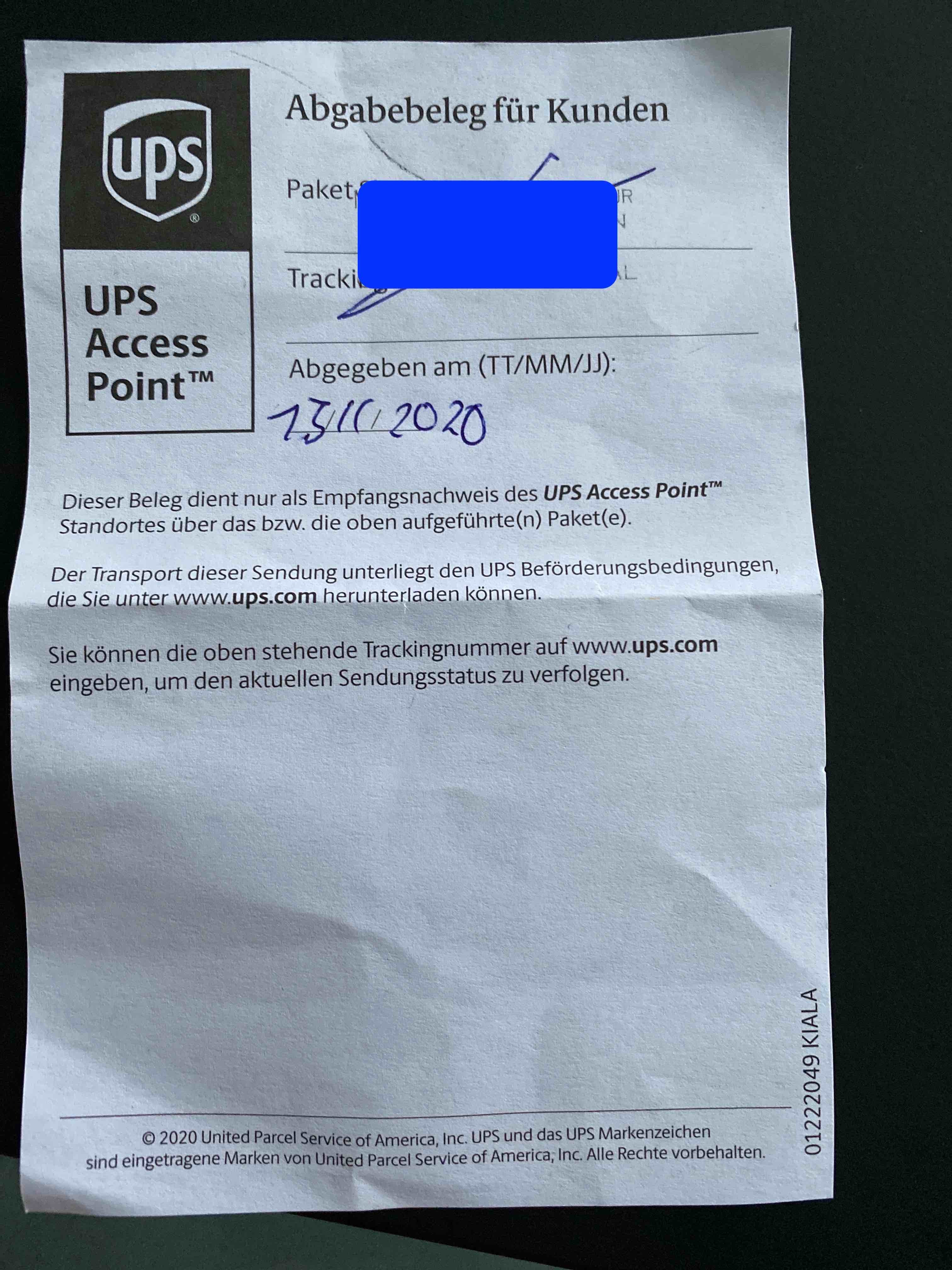 Ich habe das neue IPad zusammen mit dem Rücksendungsauftrag für das alte iPad erhalten. Allerdings kann ich keine Sendungsdaten sehen zur Rücksendung und ich habe es via UPS zurückgeschickt. Dort gab es auch keine Sendungsnummer für mich sondern nur einen „Abgabebeleg für den Kunden“.