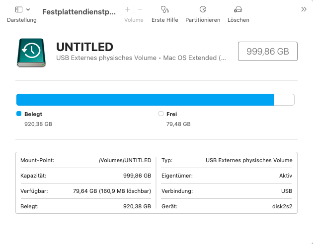 "Time Machine konnte das Backup auf „UNTITLED“ nicht abschließen