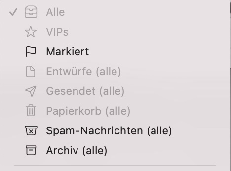 Dieses Durcheinander nervt mich, zumal am Ende der linken Seitenleiste ohnehin jeder Account NOCHMAL seine individuellen Postfächer (siehe Bild) auflistet (ich habe 5 🙈).