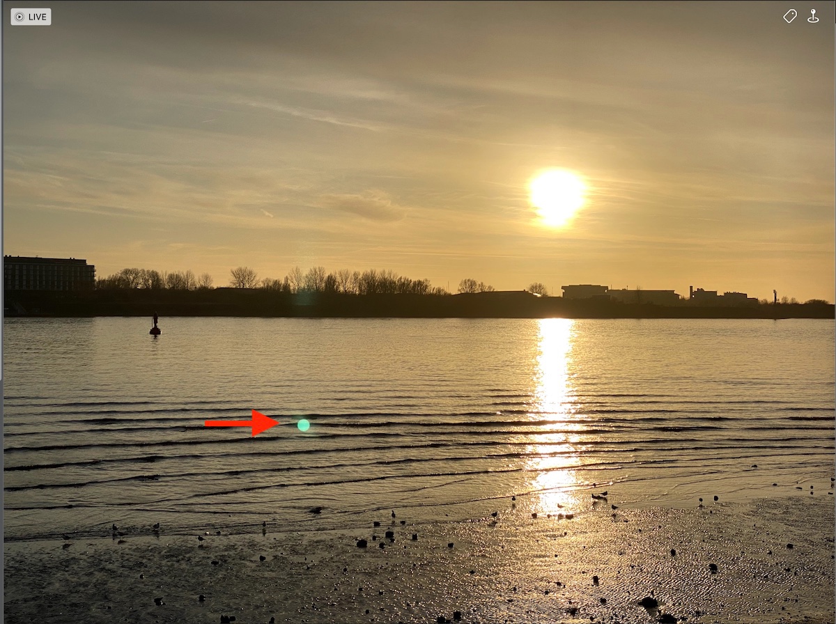Wenn ich ein Live Photo aufnehme, tanzen diese Lichter herum. Das schliesst ein Problem mit der Linse aus, da die Flecken an unterschiedlichen Positionen im Bild auftauchen und mit der bewegten Lichtquelle tanzen.