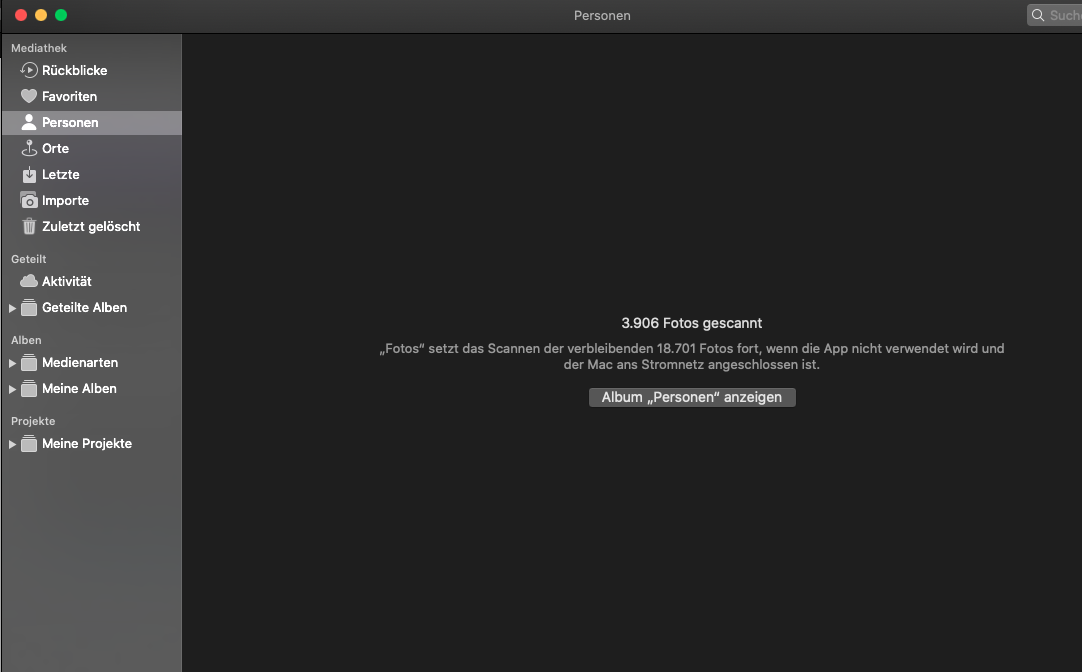 Ich bin mir jedoch immer noch nicht sicher was du meinst. Ich habe auf meinem Mac nachgesehen (macOS Big Sur) und kann in der Fotos App auch keinen Abschnitt "Fotos" finden: