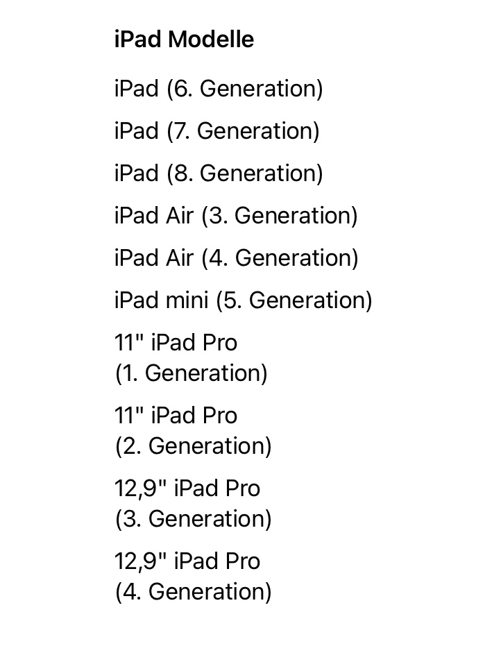 hier nochmals final die Liste kompatibeler iPads.