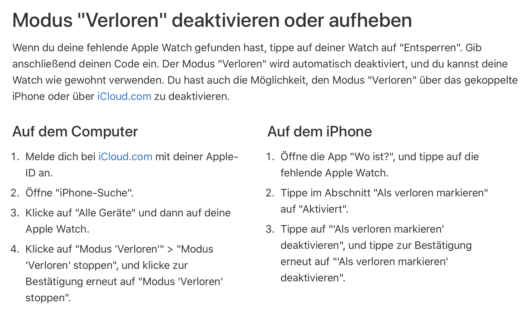 Hallo ......hatte meine Apple watch verlegt....auf... wo ist ......gesucht und dann als verloren gemeldet...4 stelligen code eingegeben....jetzt hab ich sie gefunden, wie werde ich den Code wieder los...Lg Renate