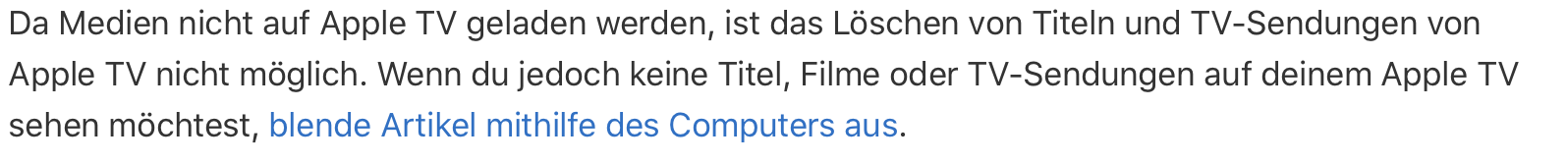 In diesem Fall können sie folgendermaßen ausgeblendet werden: Musiktitel, Filme, TV-Sendungen, Hörbücher und Bücher ein- und ausblenden.