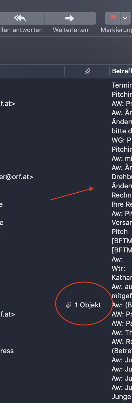 Mac Mail zeigt in der Listenansicht nur sporadisch die Anhänge (mit Büroklammer-Symbol) an