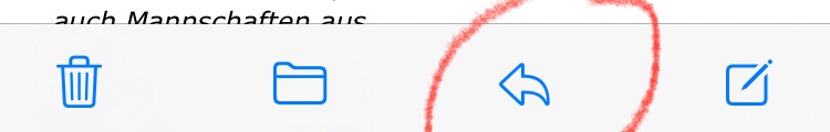 wenn ich dem Originalabsender antworten will, muss ich in der Mail ganz nach unten gehen und dann dort in der Mail (optisch) auf den Pfeil tippen.
