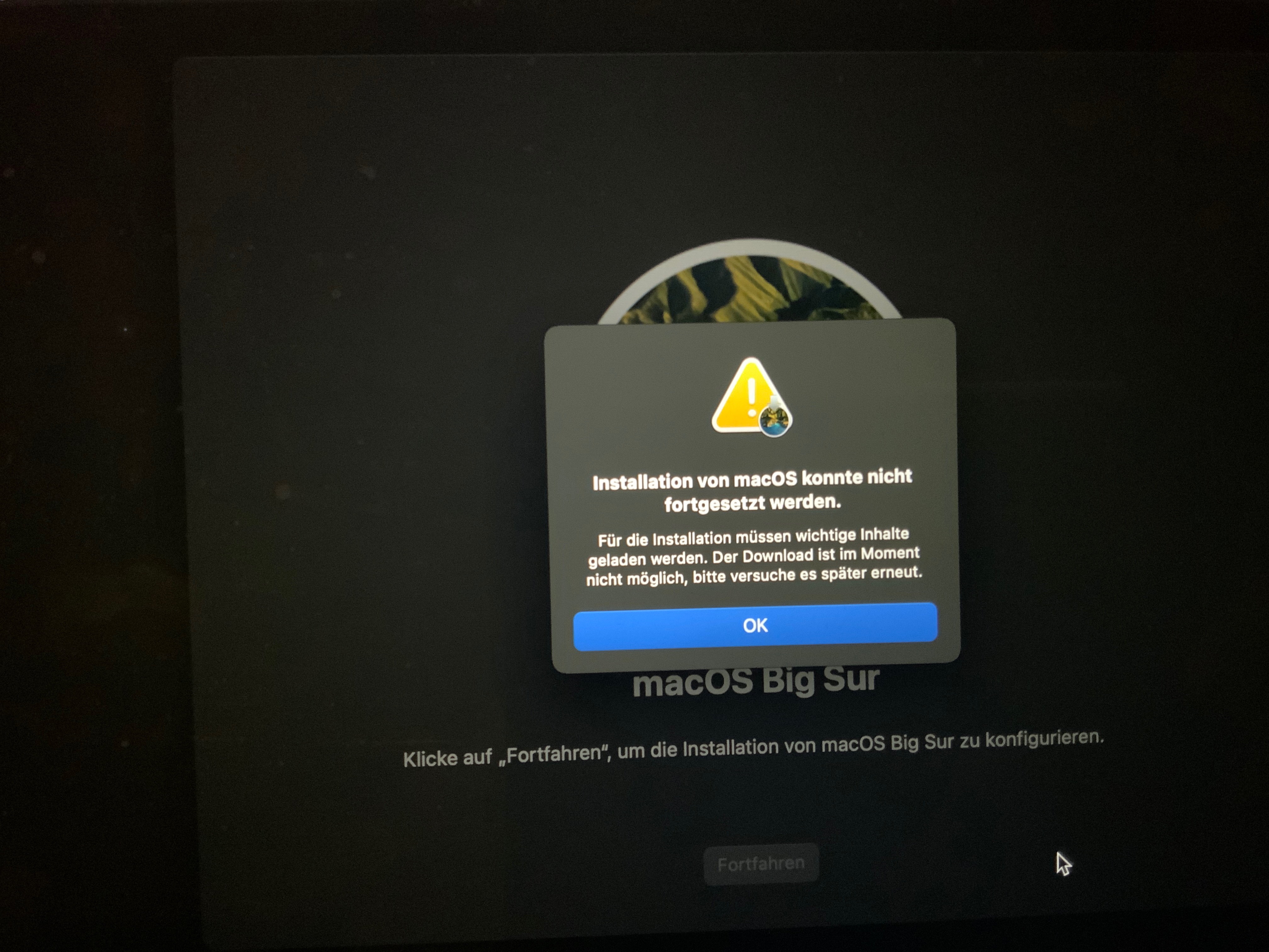 Die Vorgang von formatieren hat geklappt, indem ich das Speichermedium gelöscht habe (Macintosh). Dann habe ich neues Speichermedium erstellt dann wollte ich übers Internet den neues Software (macOS Big Sur) runterladen. Aber die Vorgang zum Herunterladen kann das Speichermedium nicht finden. Und das neues Speichermedium verschwindet immer dann, wenn ich es neustarte.
