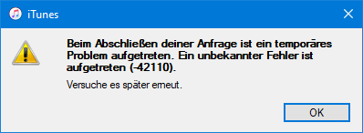 Musik kann nicht gekauft werden. Unbekannter Fehler (-42110).