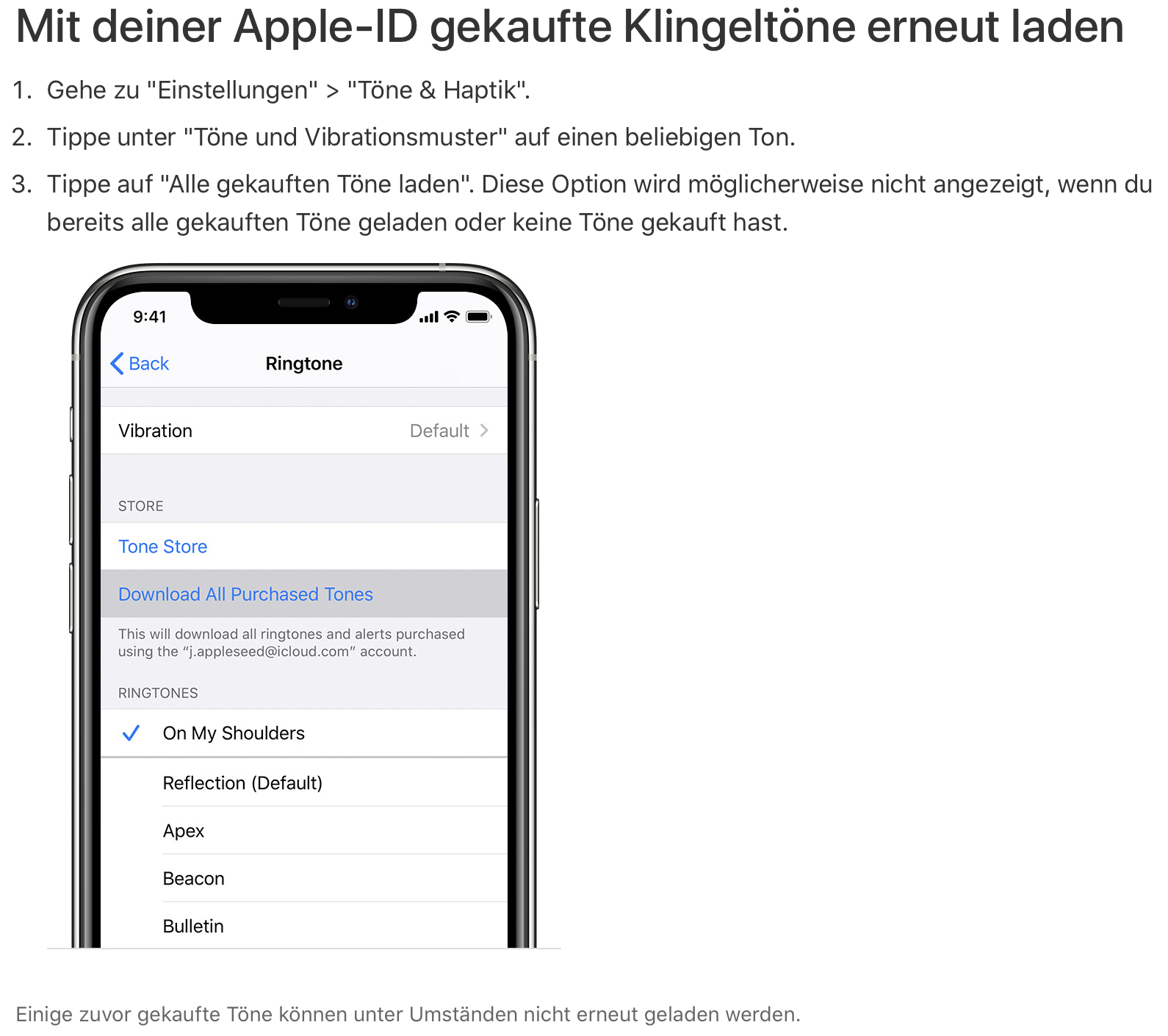 Klingelton wird im Tone Store angezeigt (ist gekauft) kann aber nicht zu den Klingeltönen hinzugefügt werden..iPhone SE 2020