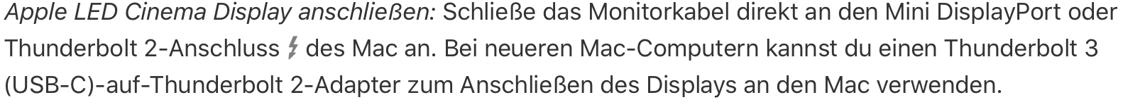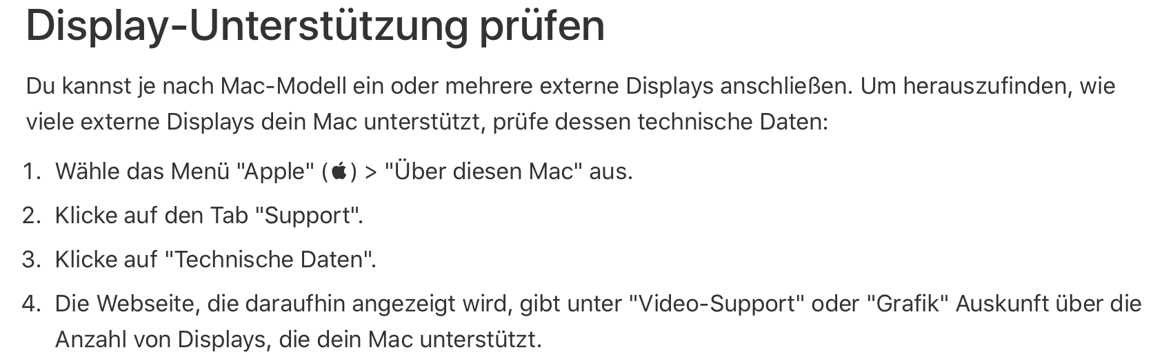 Schau dir weiterhin die Möglichkeiten mit externen Monitoren in diesem Support Artikel an: Externe Monitore mit dem Mac verwenden