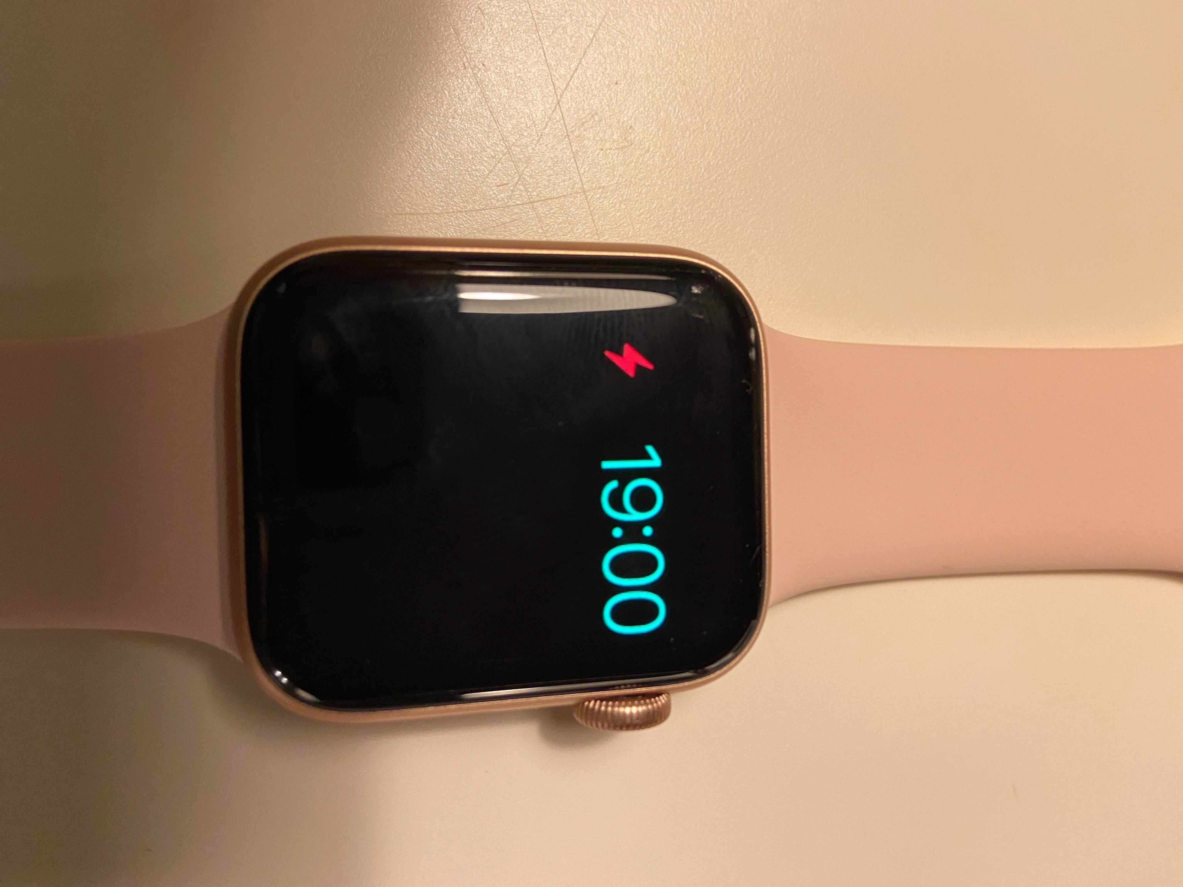 Das meine 2 Wochen alte Appel watch SE, auf einmal Morgens nur noch einen roten Blitz mit Uhrzeit anzeigt.