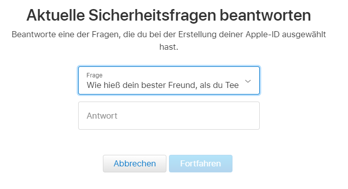 Wir verfügen nicht über ausreichende Informationen, um deine Sicherheitsfragen zurückzusetzen.":