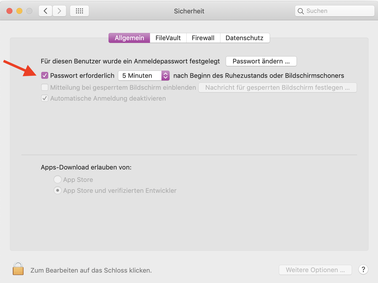 Mein Macbook schaltet sich automatisch ab, nach einer Zeit der nicht Benutzung und startet mit dem Anmeldefenster wo ich mein Passwort eingeben muss. Wie kann ich dies abschalten?