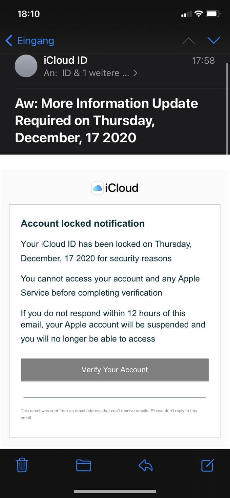 Mehr dazu hier: Phishing-Nachrichten, falsche Supportanrufe und andere Betrugsversuche erkennen und vermeiden - Apple Support