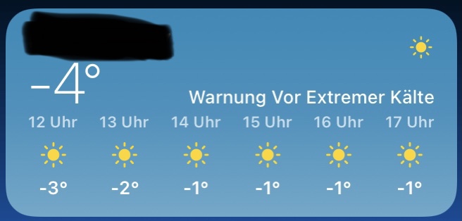 Warum warnt die Wetter App bei -1 Grad vor „extremer Kälte“, während die Datenquelle, der Deutsche Wetterdienst, diese Temperatur als „leicht kalt“ bezeichnet?