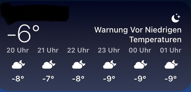 Vor allem warum schwenkt es bei noch kälteren Temperaturen dann wieder zu „Warnung vor niedrigen Temperaturen“ ?