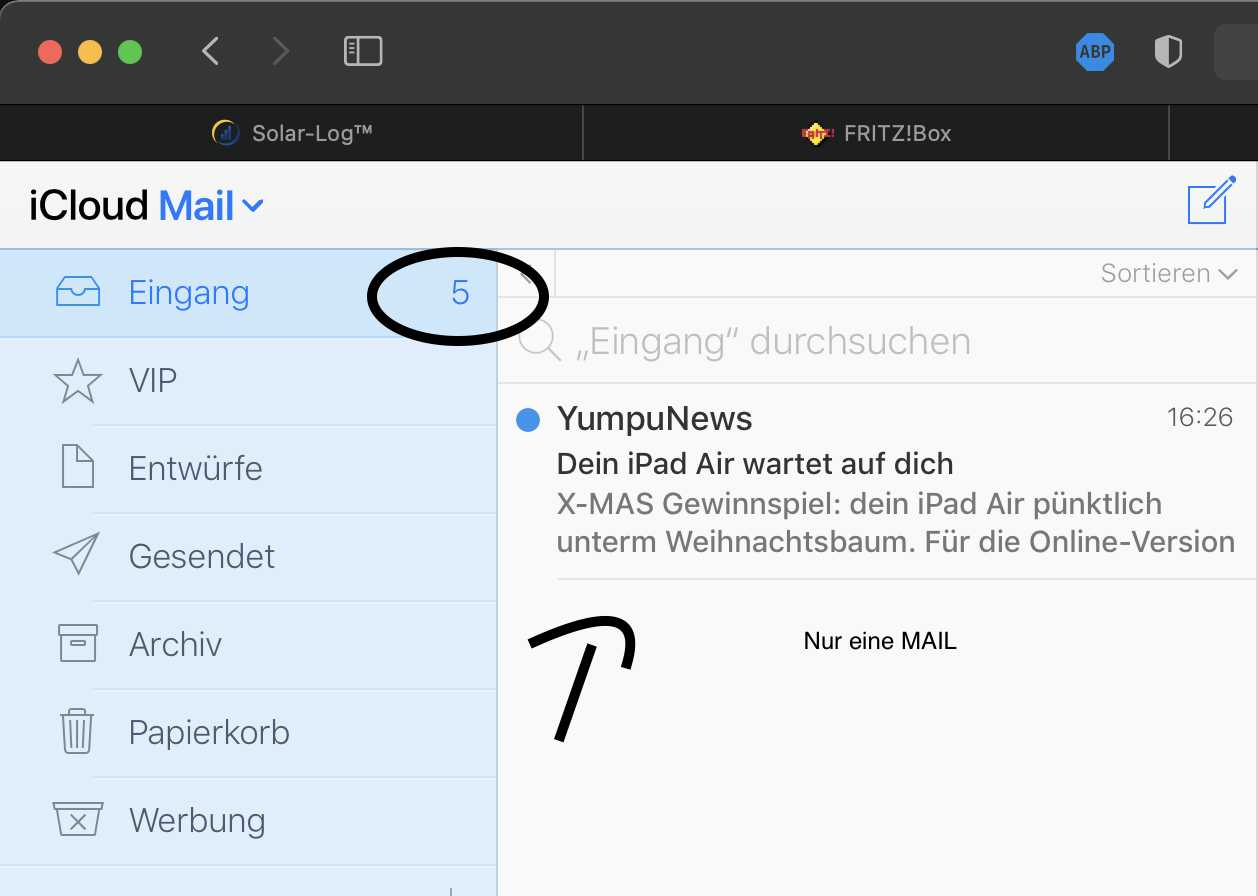 Ich habe 4 Nachrichten im Posteingang, die ich aber nicht sehe. Diese werden mir via iCloud Mail (Browser) oder auch auf dem Handy angezeigt. Wenn ich dann den Posteingang aufmache, wird mir keine Mail angezeigt. Wer kann diese löschen?