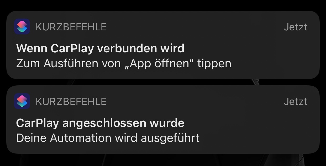 Anschließend habe ich 1 zu 1 die selbe Automation auf einem iPhone 6s erstellt, welches ebenfalls mit TouchID gesichert ist und dort funktioniert es perfekt, auch in gesperrtem Zustand. Die Apps werden wie gewollt gestartet, nachdem sich das iPhone mit CarPlay verbunden hat.