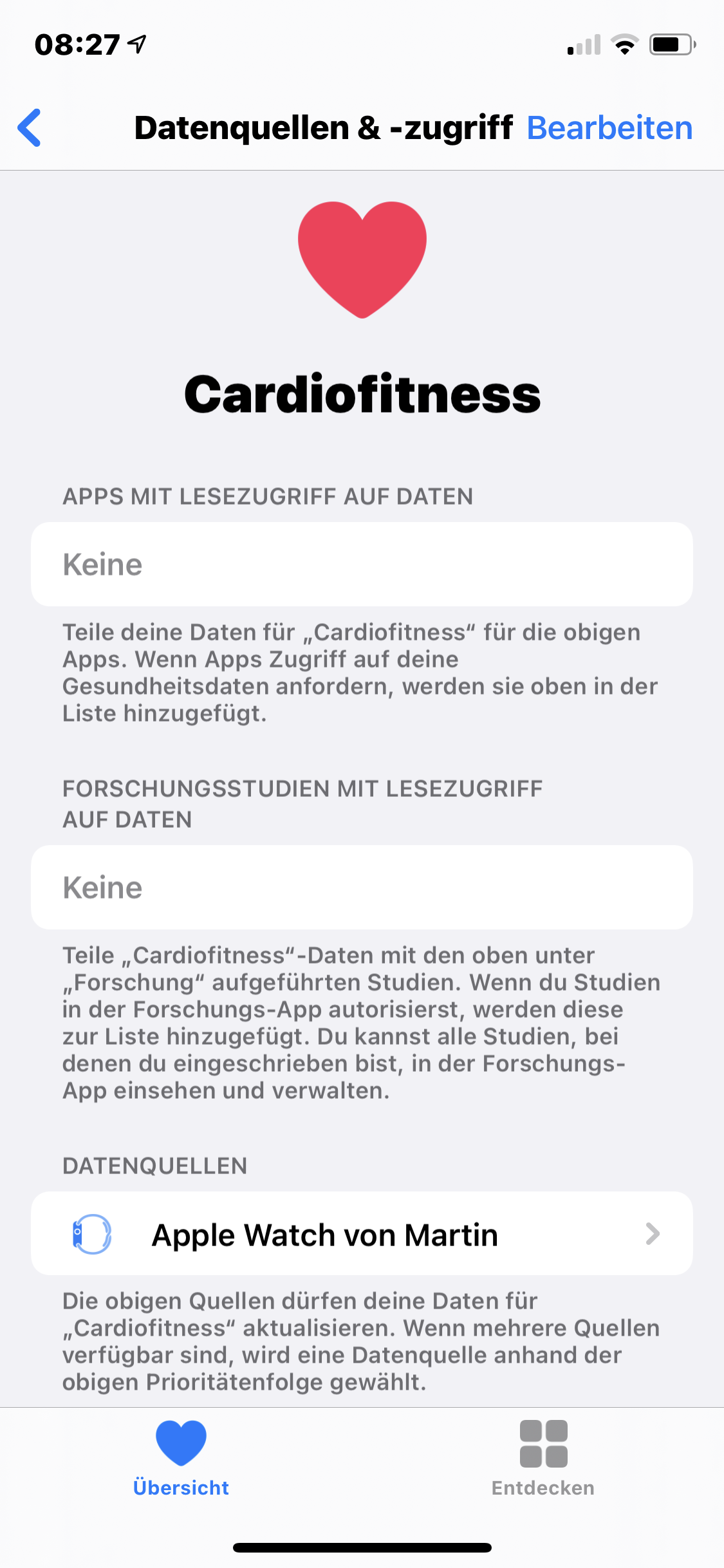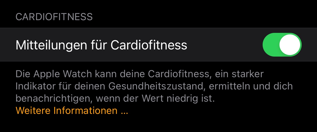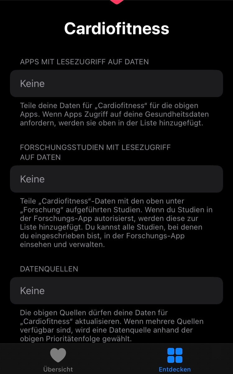ich habe eine Frage zur Apple Health App. Leider werden mir keine Daten im Bereich Cardiofitness angezeigt, obwohl ich mit der Apple Watch verbunden bin. Woran liegt das?