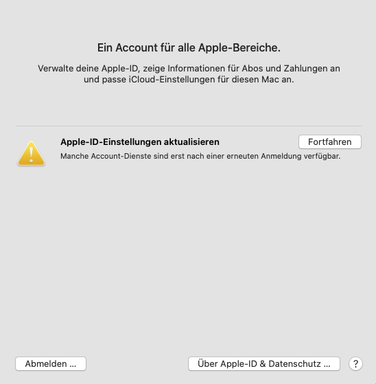 Wenn ich meine Apple-ID Einstellungen aktualisieren möchte und mein Passwort eingebe, dann passiert nichts. Ursprünglich hat meine Mutter sich mit ihrer Apple ID an unserem iMac angemeldet & alle Programme etc. geladen. Liegt daran das Problem? Und wenn ja, was kann ich tun, dass ich meine Apple-ID Einstellungen wieder aktualisieren kann?
