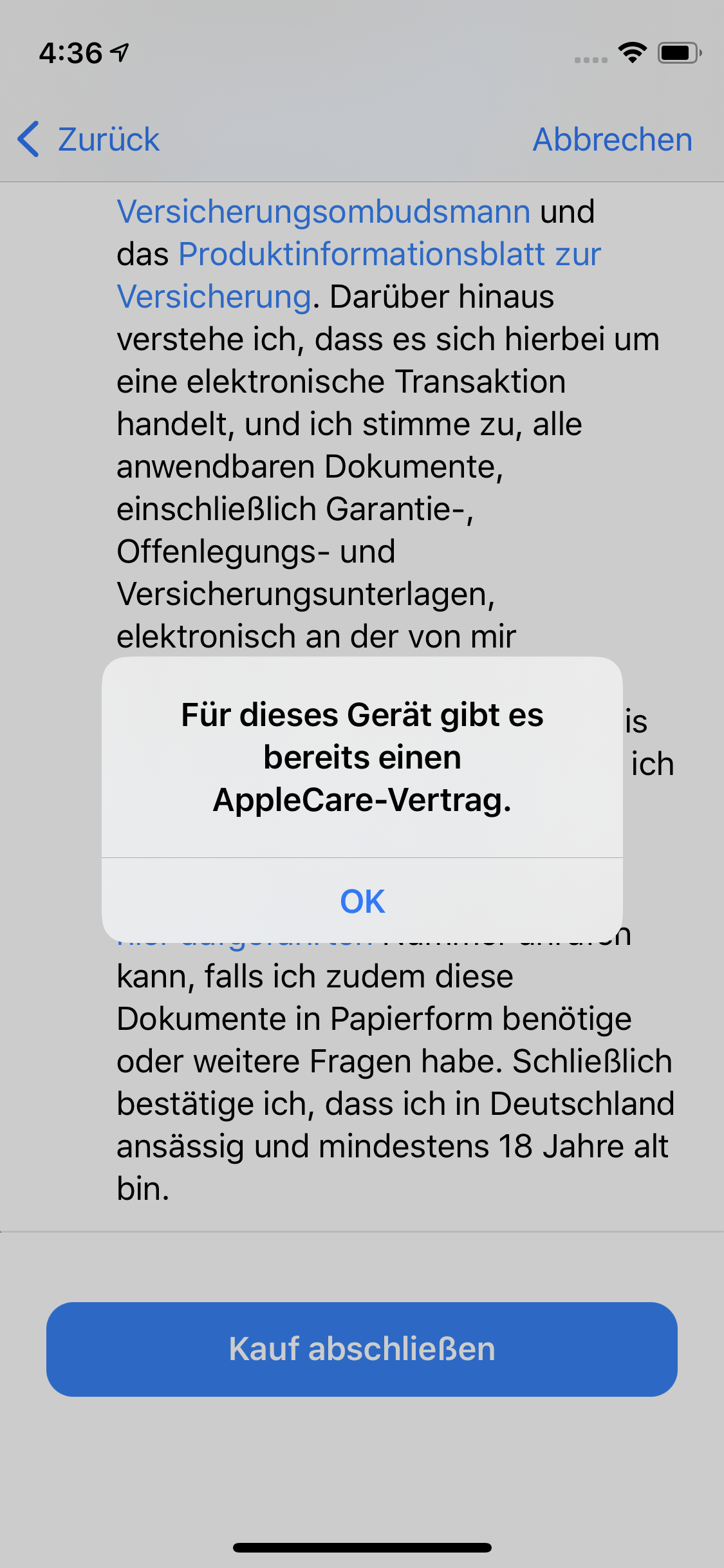 Neues iPhone 12 Mini ist heute per Post gekommen, wollte die Apple Care+ Abdeckung über die Einstellungen hinzufügen und auf ein Mal steht da „für dieses Gerät besteht bereits ein Apple Care Vertrag“ was ja nun nicht sein kann.