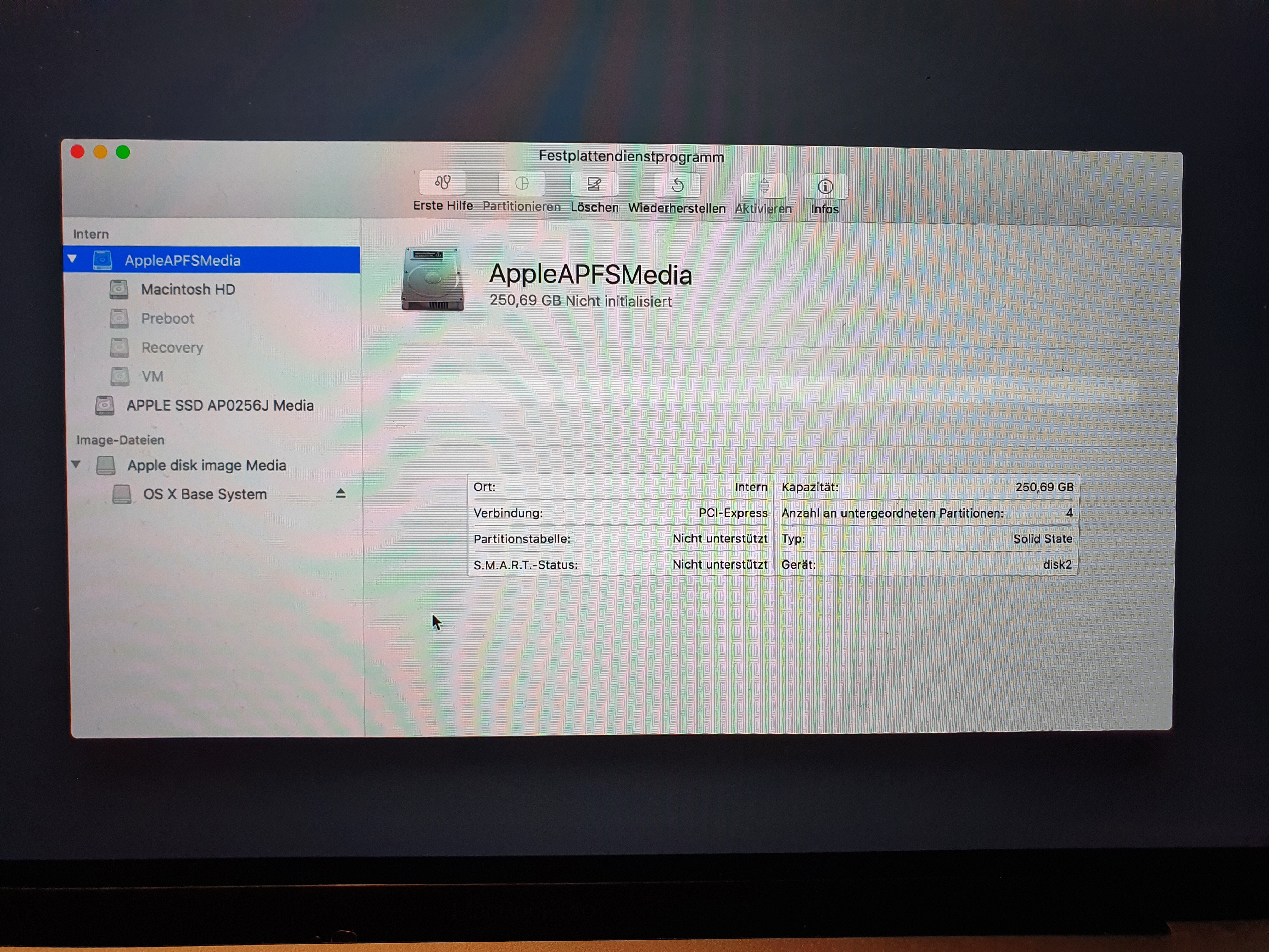 Ich hatte es zwischenzeitlich bereits auf Mac OS X Catalina geupdatet und dementsprechend zwei Volumes: Macintosh HD und Macintosh HD - Daten.