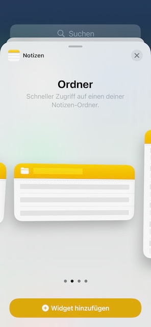 Es lassen sich im Widget weder Notizen-Ordner noch Einzelnotizen (4te Widget-Option) zur Anzeige auswählen, da der jeweilige Dialog leer bleibt.
