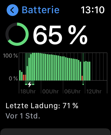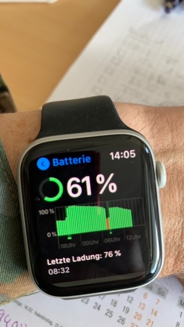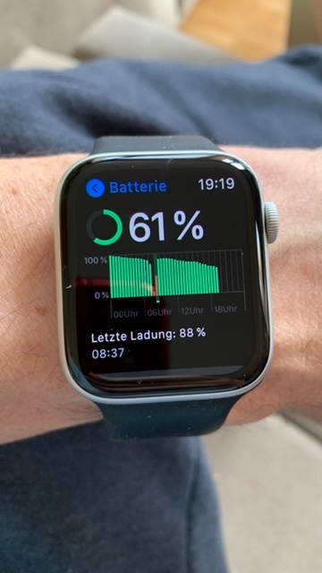 - Voll geladen, Musik hören mit PowerbeatsPro - 20 Sekunden und die Watch fällt aus, nach Neustart wird "nur" noch 10% Ladezustand angezeigt, rauf auf das Ladegerät, innerhalb von 5 Minuten wurde der Ladezustand wieder mit +80% angegeben.