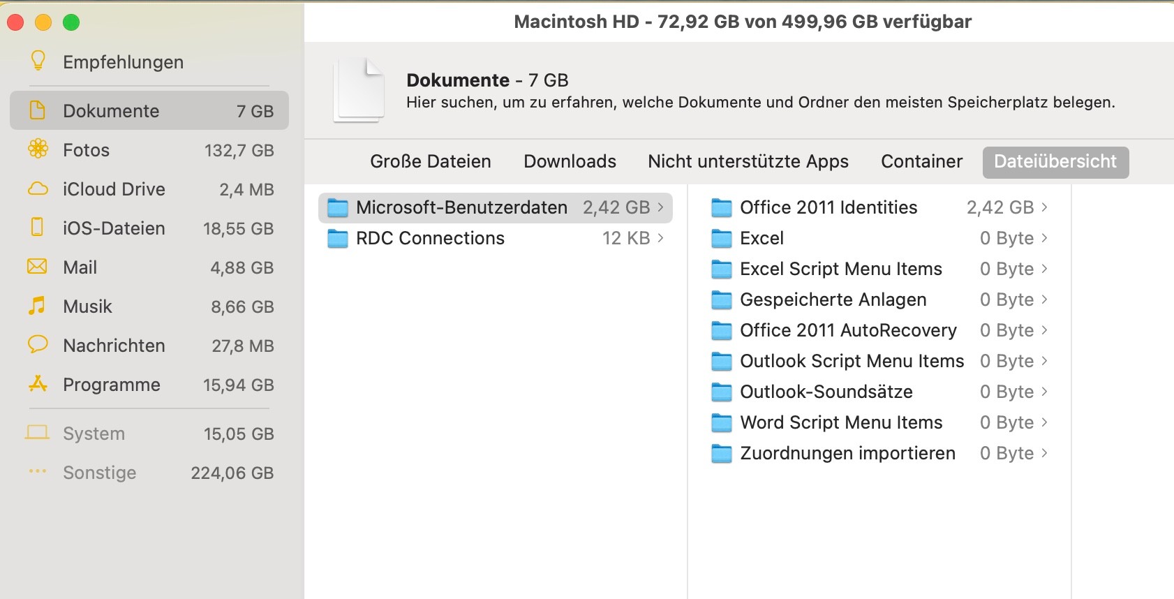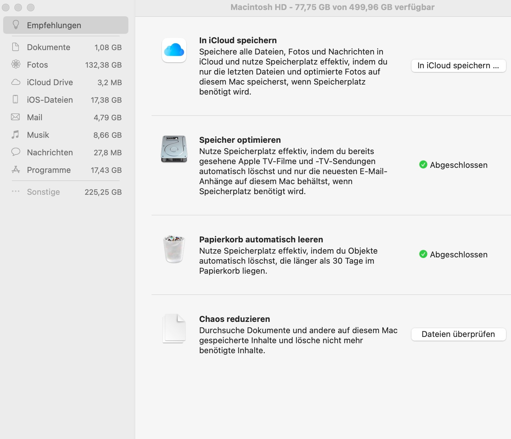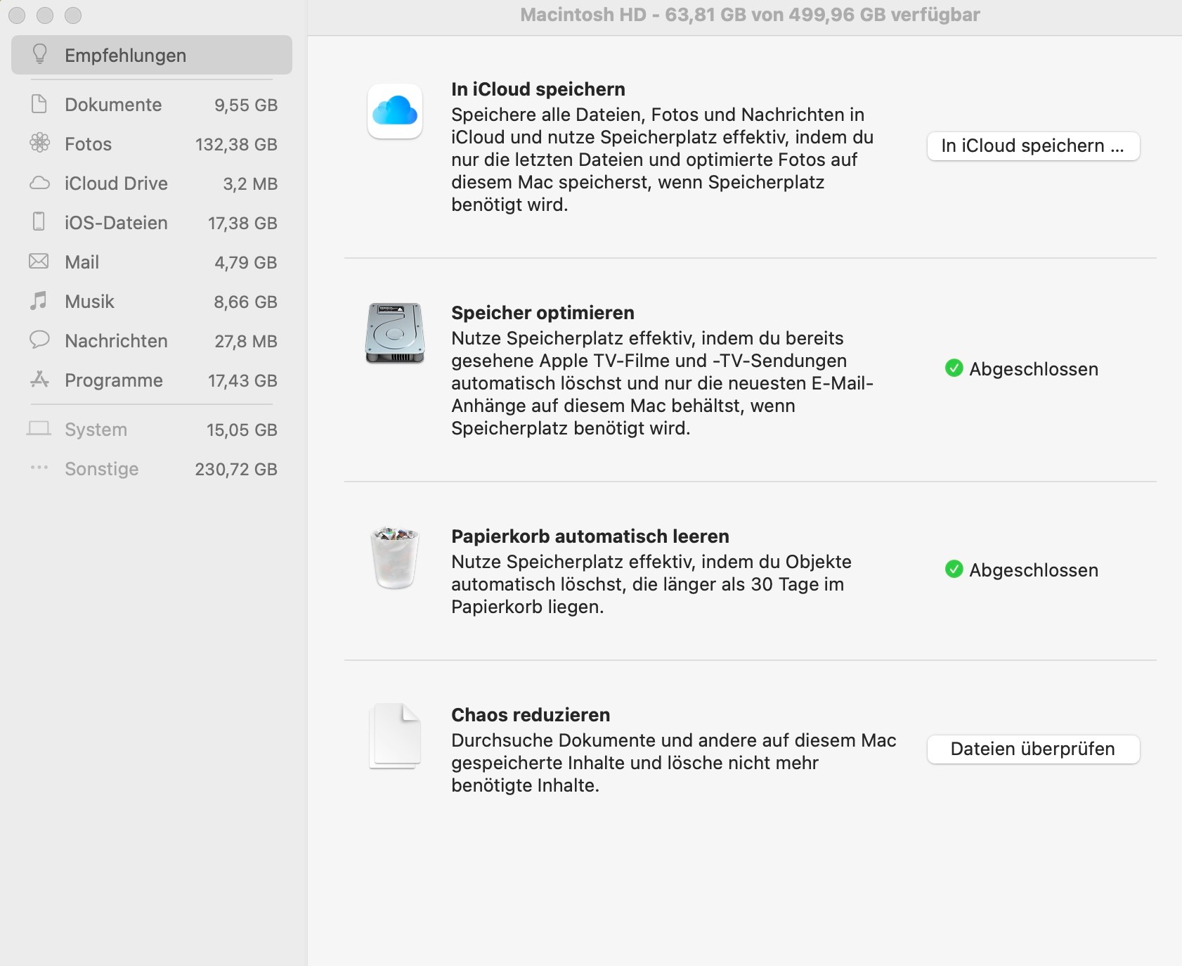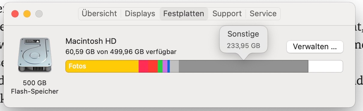 Aufgefallen ist mir die seltsame Belegung erst, als das macbook einen vollen Speicher meldete. Ich habe seitdem Fotos entrümpelt und einige Daten auf externe Festplatte verschoben, aber an `Sonstige` hat sich dadurch nichts geändert.