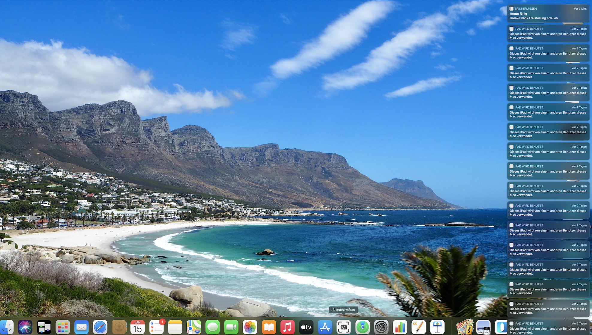 meine Frau und ich haben zwei unterschiedliche Accounts auf meinem Mac. Auf jedem sichere ich jeweils das zugehörige iPhone und iPad. Nun ist es so das immer wieder die Meldung: Dieses iPad wird von einem anderen Benutzer dieses Mac verwendet, erscheint. Manchmal bei mir, manchmal bei ihr. Wenn ich die Mitteilungszentrale ausschalte ist dies nicht der Fall. Habe schon mehrere Sachen in der Mitteilungszentrale ausgeschaltet, hat aber nichts genutzt. Vielleicht hat ja jemand eine Lösung. Im voraus vielen Dank.