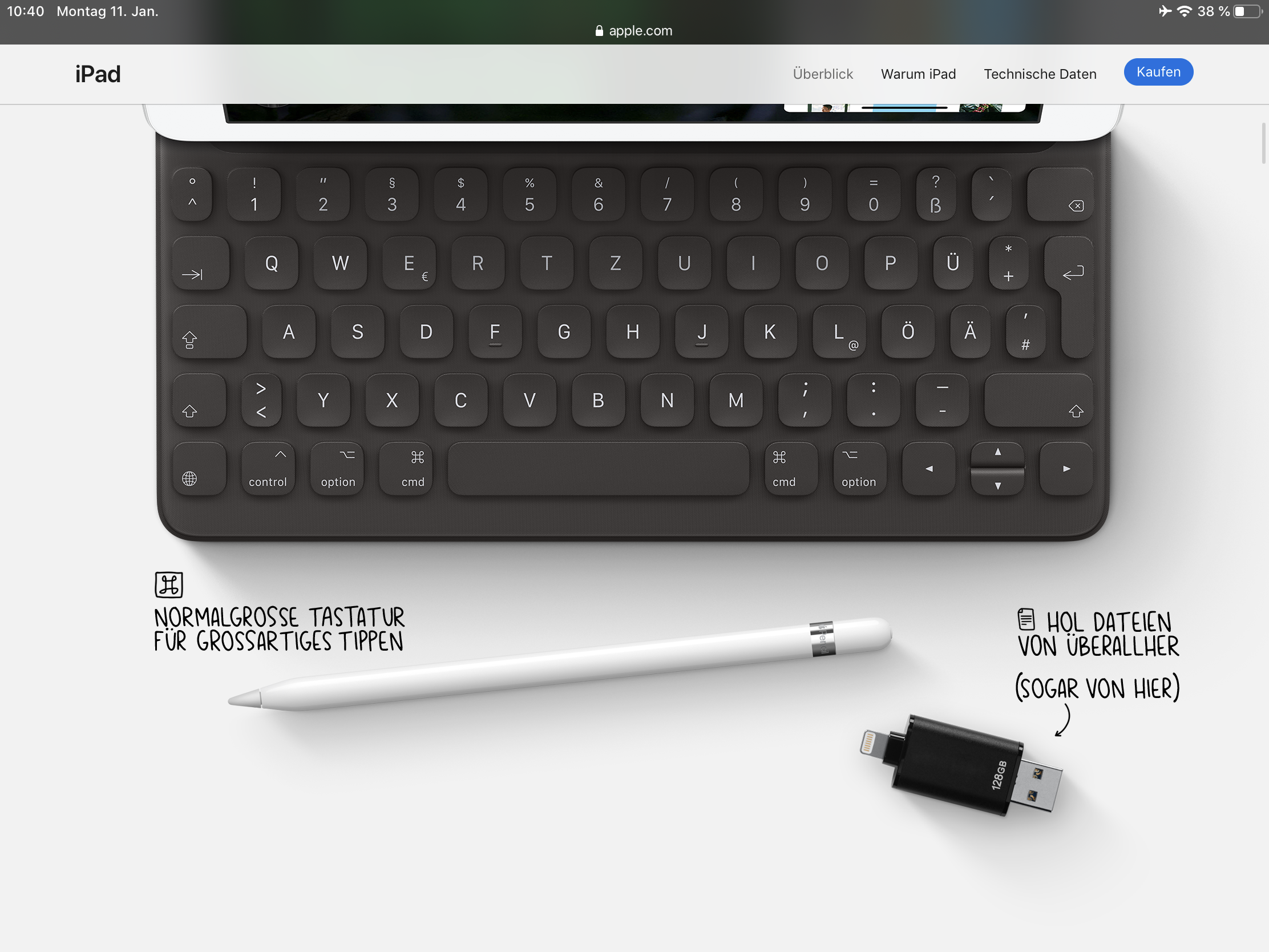 ich würde gerne Daten (Word-Dokumente, PDFs) von einem USB-Stick auf das iPad (8. generation) übertragen. Ich würde gerne wissen, wie ich das machen kann? Laut Website soll das funktionieren. Siehe anhängendes Bild: