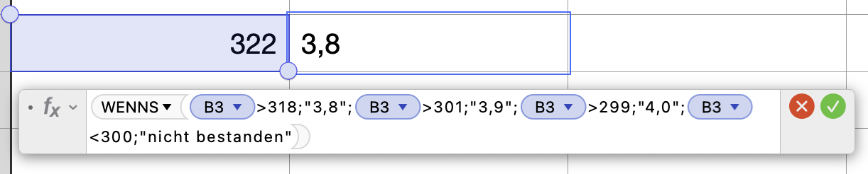 Ich versuche aber gerade meine Abitursnote über eine eigen erstellte Tabelle auszurechnen. Nun möchte ich aber eine "Automatisation" hinzugefügt, in der die Gesamtpunktzahl in eine Note konvertiert wird.