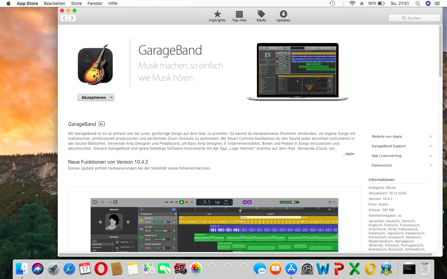 Hast du noch einen weiteren Administrator Nutzer auf deinem Mac? Falls nicht, könntest du bitte einen neuen Administrator zum Testen anlegen: Einrichten von Benutzern, Gästen und Gruppen für den Mac? Lässt sich GarageBand dann installieren?