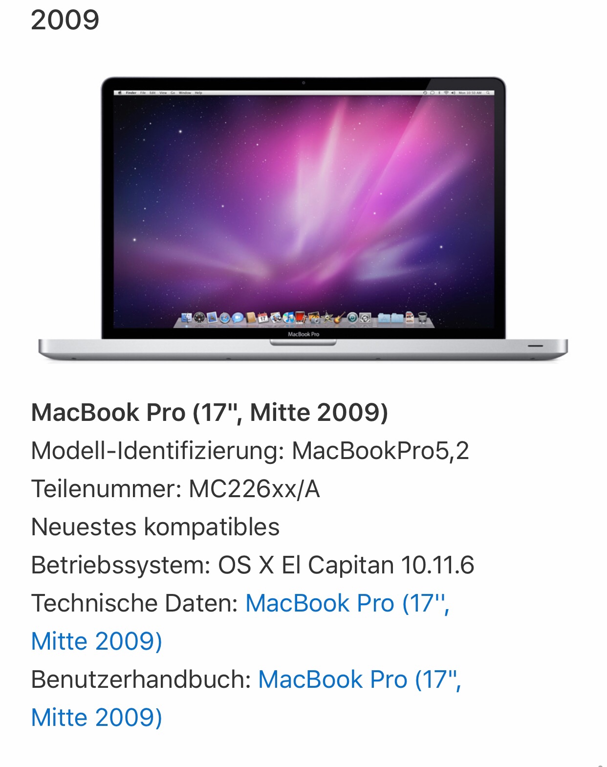 Gibt es ein kompatibles noch NEU im Apple Shop zu kaufen? Mein MacBook Pro 17 Zoll ist wohl Baujahr Mitte 2009.