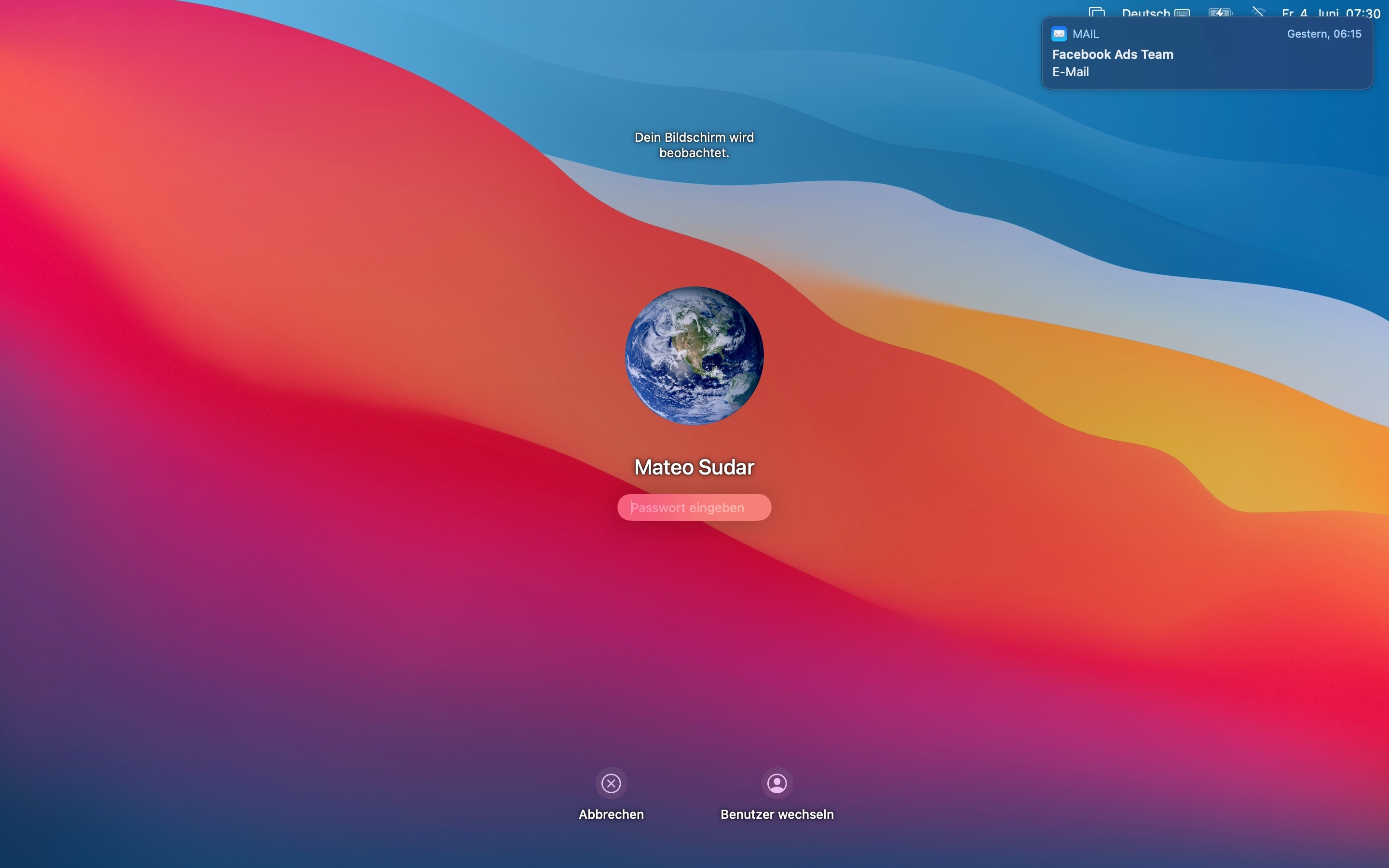 Ihr Bildschirm wird beobachtet - Anzeige vor dem Einloggen