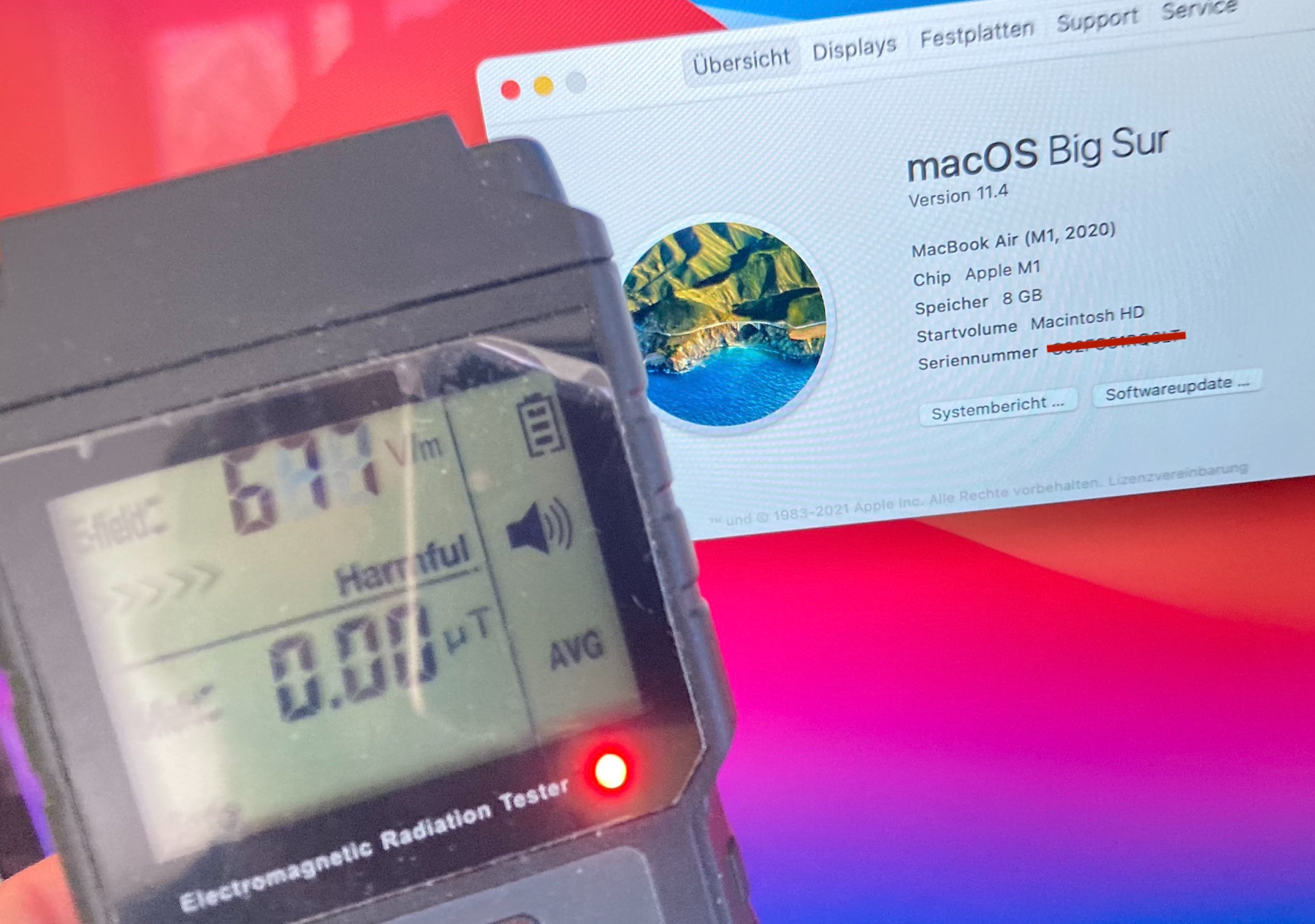 Bisher hatten wir zu Hause (mit den alten Geräten, die gelegentlich noch im Einsatz sind) 3 MACs, 4 MacBooks und 2 Windows-Laptops (Acer und Toshiba). Von diesen erzeugt jedoch nur Acer ein elektromagnetisches Feld, wenn es ans Stromnetz angeschlossen bleibt.